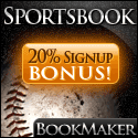 Bookmaker Sportsbook - Up To $500 With 20% or 10% Match Bonus Bookmaker has hit the sports betting world like a truck, and they have left nothing but success in their wake. Bookmaker brings their players some of the most extensive betting possible. There is not a single event that Bookmaker will not cover, and the different betting types will keep you entertained while you bet. If you are a sports fan or just a fan of gambling and money, Bookmaker is a good choice for you. They also have a 20% match to $500, which should continue to serve your purpose while you try to build your sports betting empire. Visit Bookmaker |
